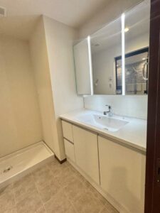 ワイドミラーや大きめの窓が空間をより広く感じさせます。