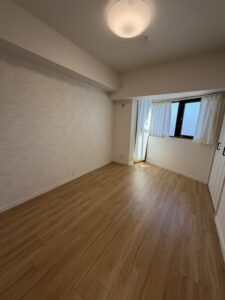 床には明るい木目調フロアタイルを採用し、白い壁紙と組み合わせることで、
